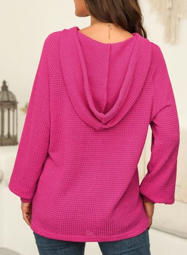 Dokotoo Womens Sweaters Hoodies Oversized Sweatshirt for Women Casual Waffle Knit Drawstring Button Up V Neck Long Sleeve Lightweight Soft Loose Hoodie Pullover Sweatshirts Tunic Tops Rosy X-Large